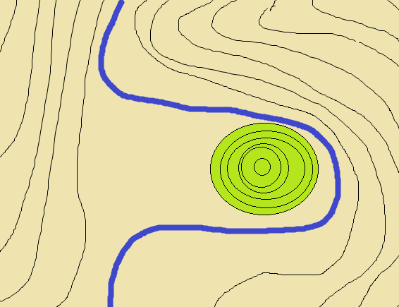 その形成過程から、還流丘陵は川のそばにあり周りに他の丘が見当たらない/近くにはない つまりその丘だけが不自然に孤立して存在することになります。