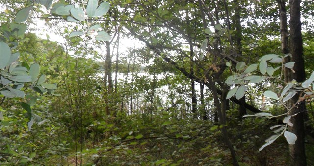 Der Außensee versteckt sich etwa einen halben Kilometer entfernt hinter den Bäumen links des Wegs, da schimmert rechts ein anderer See zwischen den Bäumen. Es ist der Lange See - nicht sehr groß (gute neun Hektar), aber ein ganz Langer (über 600 Meter). Er ist rundherum bewaldet, hier im Süden zur Abwechslung mit Erlen, seine Wasseroberfläche liegt etwas höher als die des Außensees und er hat keinen oberirdischen Zu- und Ablauf, die Entwässerung läuft über moorigen Untergrund Richtung Außensee.