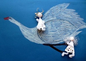 Die beiden Engel staunen, als sie merken, dass sie auf dem Rücken von fliegenden Schwänen gelandet sind. „Wo fliegt ihr hin", will einer der Engel wissen. „In eine wärmere Gegend, in den Süden", antwortet ein schöner, weißer Schwan. „Könnt ihr uns vielleicht vorher zum Himmel fliegen?" bittet der kleine Engel. „Gerne", antwortet der Schwan, „aber bitte verlasst unsere Rücken und haltet euch an den Beinen fest, denn sonst können wir mit unseren Flügel nicht so gut schwingen". Die Engel rutschen hinunter und umklammern mit ihren kleinen Händen die langen Beine der Schwäne. Sie schweben und fliegen durch die Luft, dem Himmelstor entgegen. Aber das geht nicht lange gut, denn die zwei Engelchen haben zu wenig Kraft in den Armen. Sie merken, dass sie immer schwächer und schwächer werden und sich nicht mehr festhalten können. Auf einmal lösen sich ihre kleinen Hände von den Beinen der Schwäne und sie purzeln beide wieder auf die Erde.