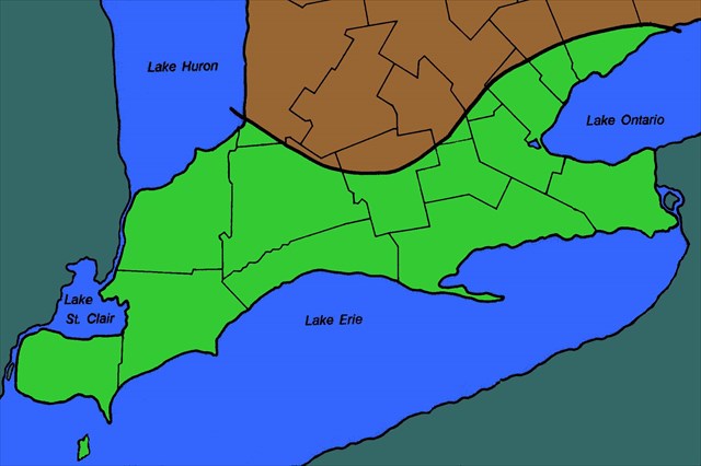 Extending northward from the Carolinas to its northernmost point in southwestern Ontario, the Carolinian Life Zone is a region of biological richness. Ontario’s Carolinian Zone lies south of an imaginary line between Grand Bend on Lake Huron and Toronto on Lake Ontario and includes the entire north shore of Lake Erie. This region enjoys warmer year-round temperatures than any other part of Ontario. The climate supports ecosystems found nowhere else in Canada, along with levels of biological diversity unsurpassed elsewhere in the province.