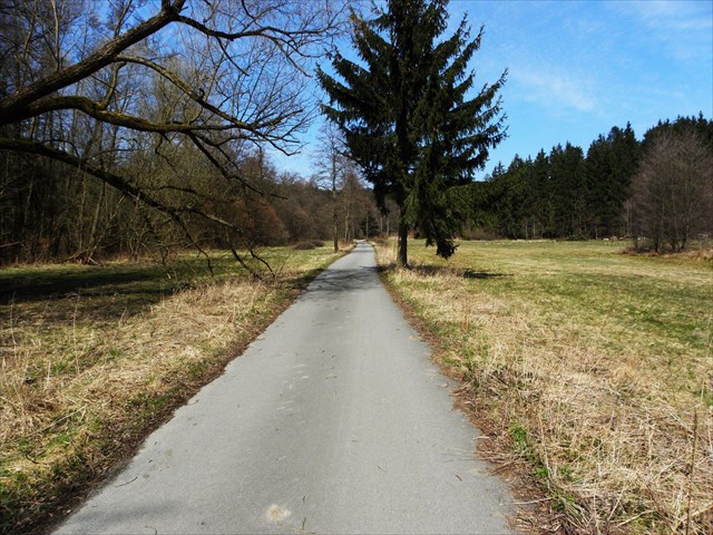 Stezka s kvalitním povrchem, která vede údolím potoka Luha od obce Sloup až pod tzv. Vlčí skálu. Celková délka trasy v jednom směru je 4 km. Cesta je lemována loukami a lesy, před žhavým letním sluncem se tu však téměř neschováte. Ve směru na Vlčí skálu cesta více méně stoupá, takže můžete odlovit keše INLINE SKATE 1 až 6 a zpátky si užijete příjemně svižnou jízdu s odlovem bonusu. Keše jsou uloženy tak, že je lze odlovit i na bruslích.