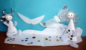 Auf der Bergspitze hängt eine kleine Wolke, auf die sie klettern, um sich ein bisschen auszuruhen. Immer noch kullern Tränen und viele kleine Glitzersterne liegen schon auf der Wolke. Aber als die zwei Engel genauer hinschauen, trauen sie ihren Augen nicht. Was liegt denn da ganz versteckt unter den Glitzersternen? Ihre verlorenen Flügel! Sie können ihr Glück kaum fassen und ihre Freude ist riesengroß. Nach einem kurzen Freudentanz auf der Wolke, nehmen sie schnell ihre eigenen Flügel und starten sofort ihre Flugreise zum Himmel. Endlich wieder im Himmel angekommen, erzählen sie glücklich und zufrieden allen anderen Engeln von ihrem großen Abenteuer auf der Erde und auch von vielen lieben Menschen, die ihnen bei ihren Flugversuchen geholfen haben.