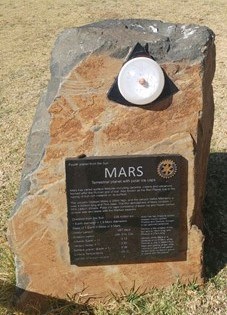 Mars is the fourth planet from the Sun and the second-smallest planet in the Solar System, after Mercury. Named after the Roman god of war, it is often referred to as the "Red Planet”, because the iron oxide prevalent on its surface gives it a reddish appearance. Mars is a terrestrial planet with a thin atmosphere, having surface features reminiscent both of the impact craters of the Moon and the valleys, deserts, and polar ice caps of Earth.