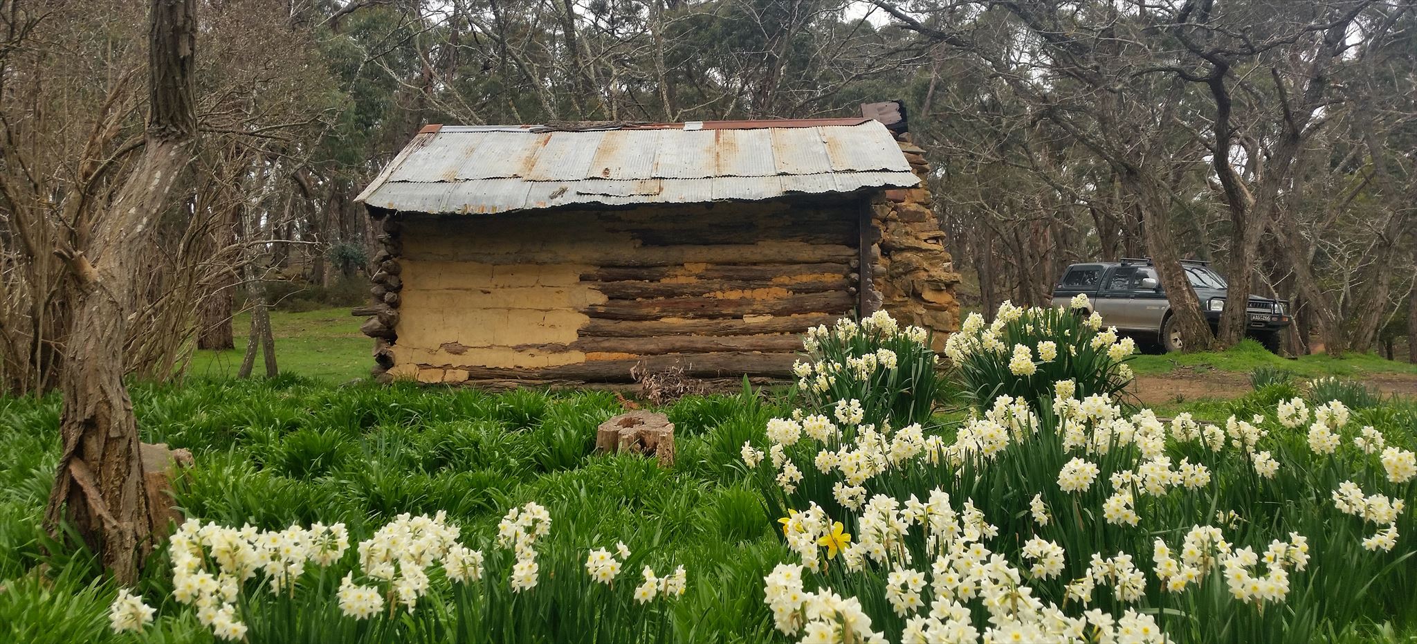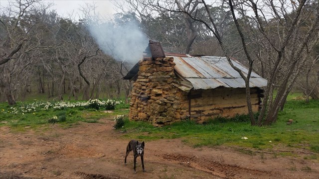 This cache is located at a hut by the name of Lafranchi's which is in the Wombat State Forrest. Lefranchi's Hut is part of a Heritage Bush walk. In the spring time you will be greeted by the flowering Jonquils then later the grape hyacinths surrounding the hut.