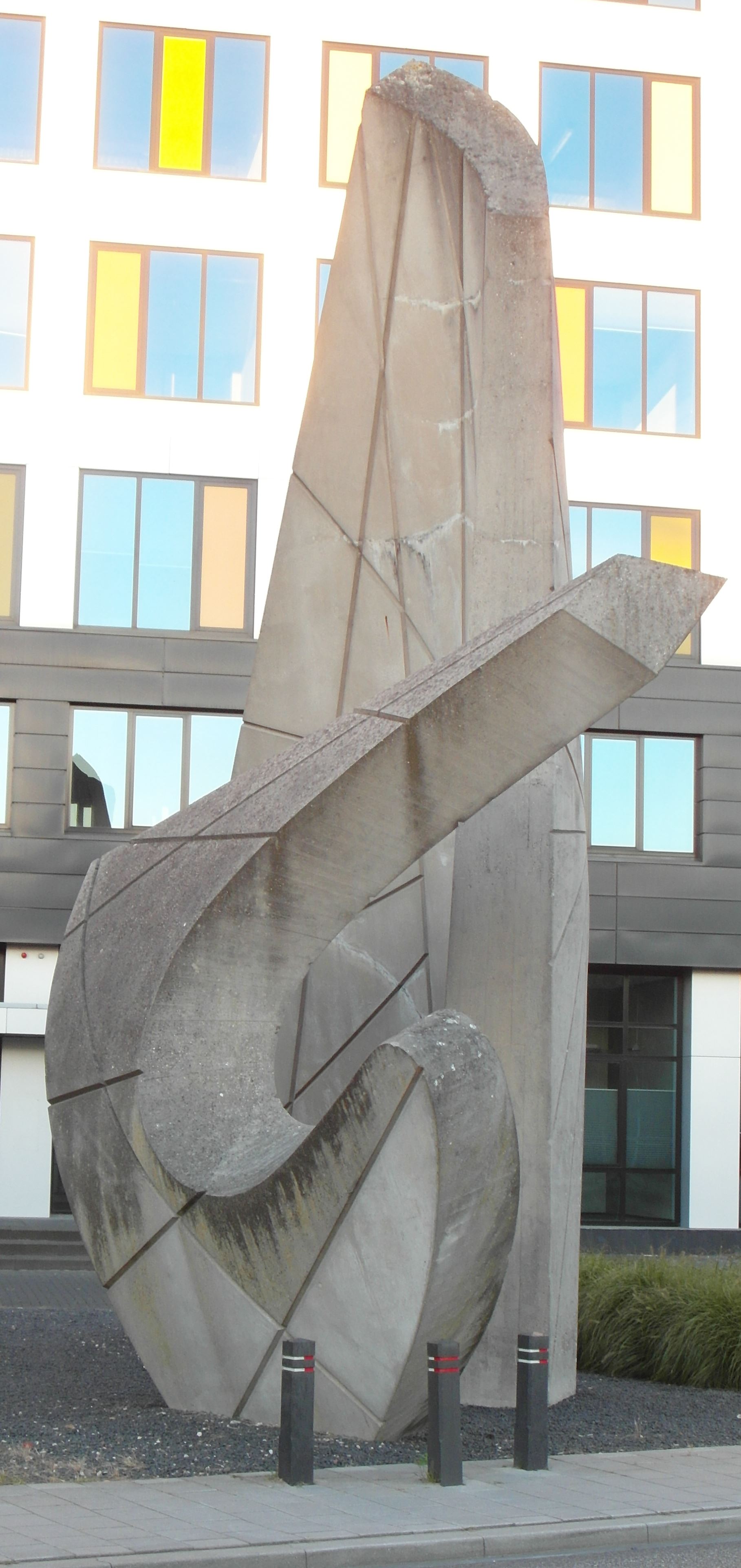 Ontdek het verschil als u het kunstwerk bekijkt met het kantoorgebouw als achtergrond of als u het bekijkt met uw rug naar het kantoorgebouw toe.