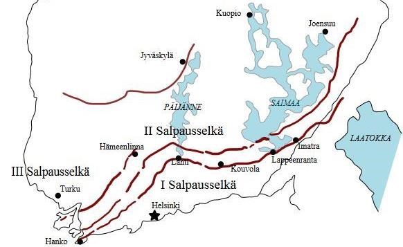 Kuva 1: Salpausselät I-III. Lähde: peda.net © Jari Laamanen