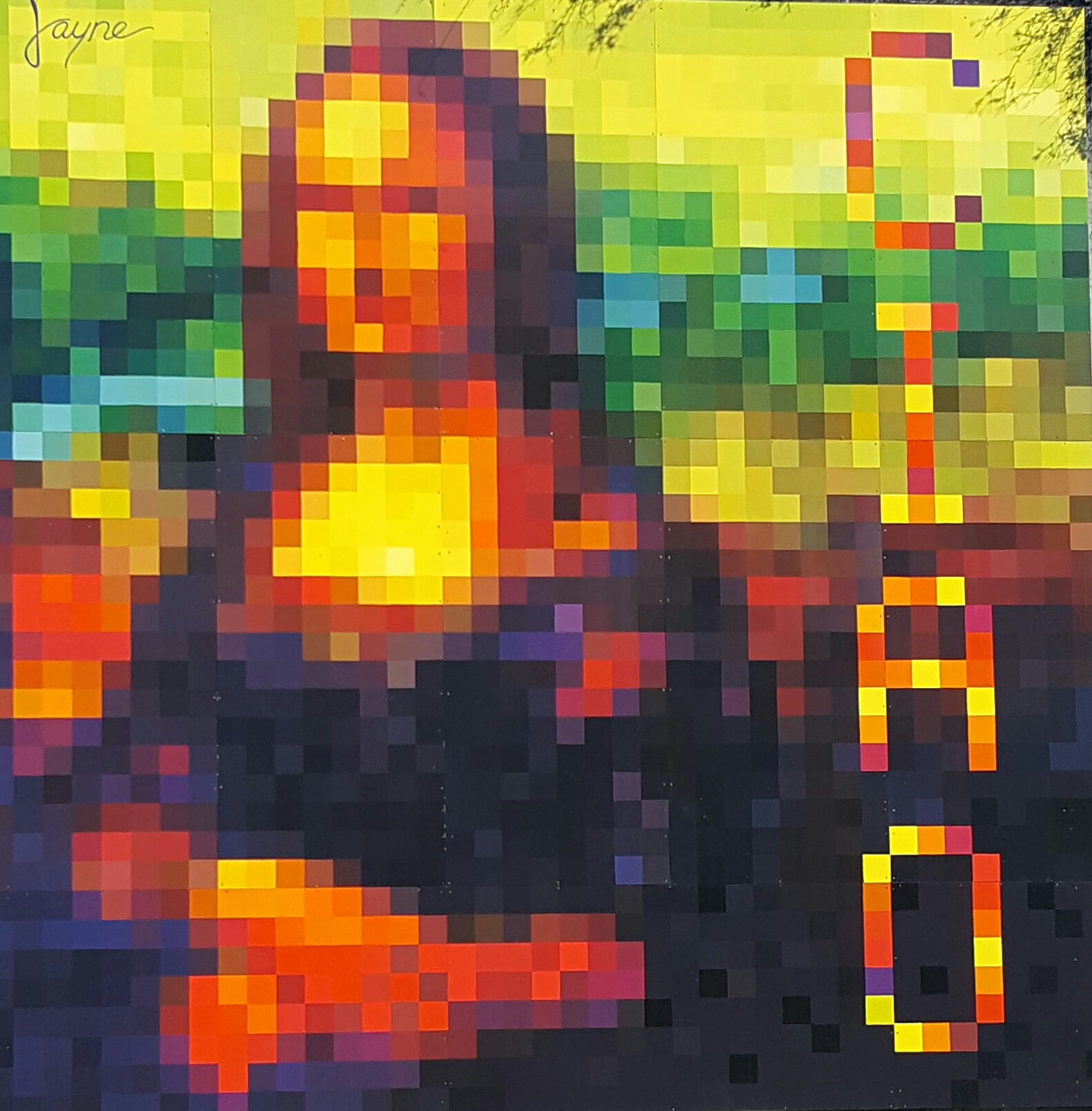 "Mine-A-Lisa" is a 20' by 20' painting mural which was modeled after Minecraft, a popular children's video game where you can build virtually anything with bricks.
