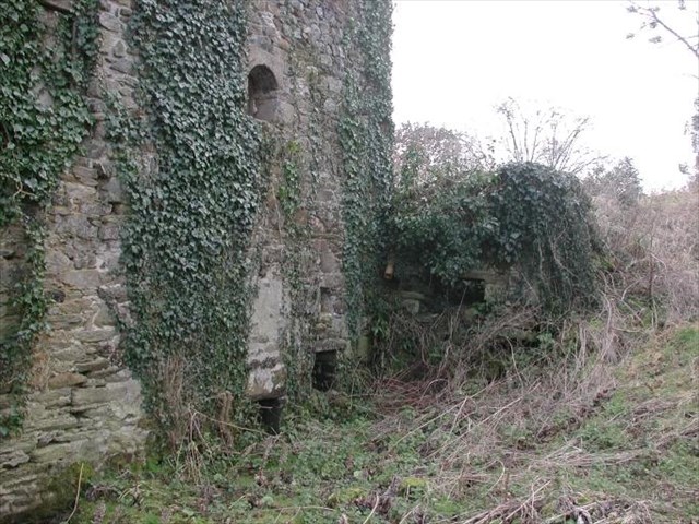Vue générale du site du moulin de Merdrel : remarquer l'ancien coursier et l'emplacement des petites roues