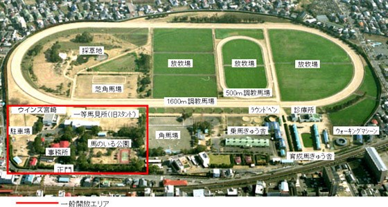 2014年10月には施設内にウインズ宮崎(利用者登録制)がリニューアルオープンしました。一般公開されているエリアにはテニスコートやちょっとした遊具もあり馬車試乗会、体験乗馬も実施しております。詳しくはイベント情報でご確認ください。