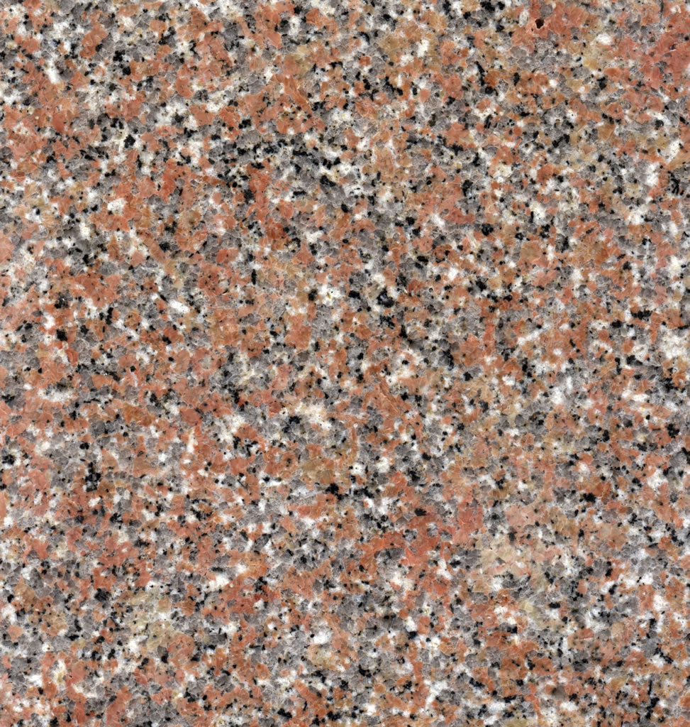 Se trata de un granito de grano medio a grueso, de color rosa uniforme debido al feldespato potásico.