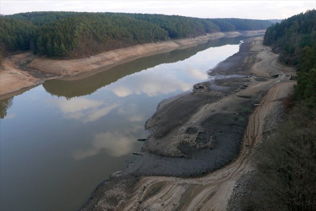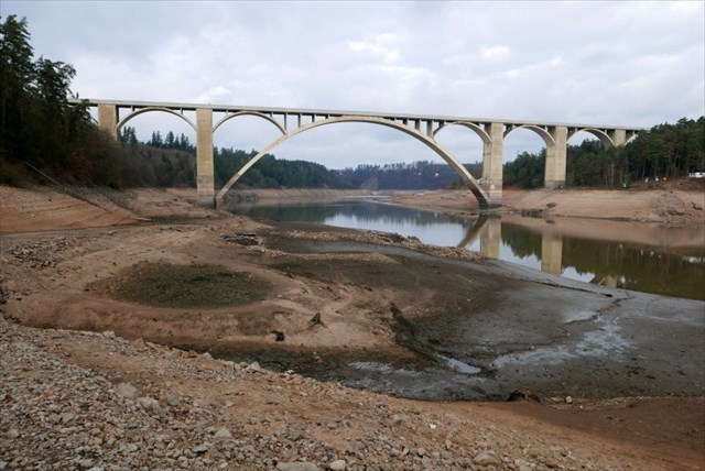 Po skončení plavební sezóny 2019 byla z důvodu prací na hrázi hladina snížena ještě níže, než byla kvůli suchu na konci léta 2015. Je k vidění mnoho zajímavého, pozůstatky budov pod mostem (okrouhlý zelený flek je údajně původní rybníček). Pro práce na hrázi je plánována manipulace s hladinou na kótu 338,5 m.n.m. i v zimě 2020/2021. V prosinci 2019 šla hladina ještě níže jen díky malým srážkám a povinnosti udržovat na Vltavě určitý min. průtok. Zbytky řetězového mostu se začínají vynořovat, až pokud se hladina začne blížit kótě 337m. Aktuální stav hladiny.