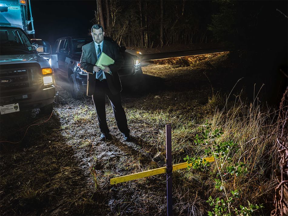 Allarmato guardai il mio collega e gli chiesi dove aveva trovato il foglio, e come tutta risposta lui mi prese l'avambraccio e mi trascinò lungo un sentierino poco battuto ai lati di un canale agricolo, fino ad arrivare in prossimità di un alto albero solitario dove la scientifica, vestita di bianco, stava lavorando illuminata da potenti fari alogeni.