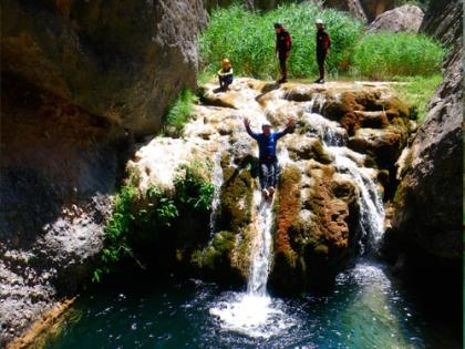 Començarem el descens sota la cascada Dels Ventadors. Entrarem a la llera i podrem realitzar diversos salts des de les pedres.