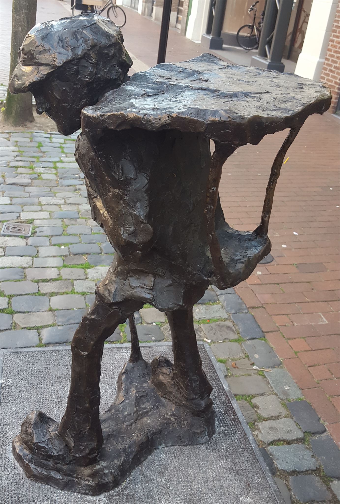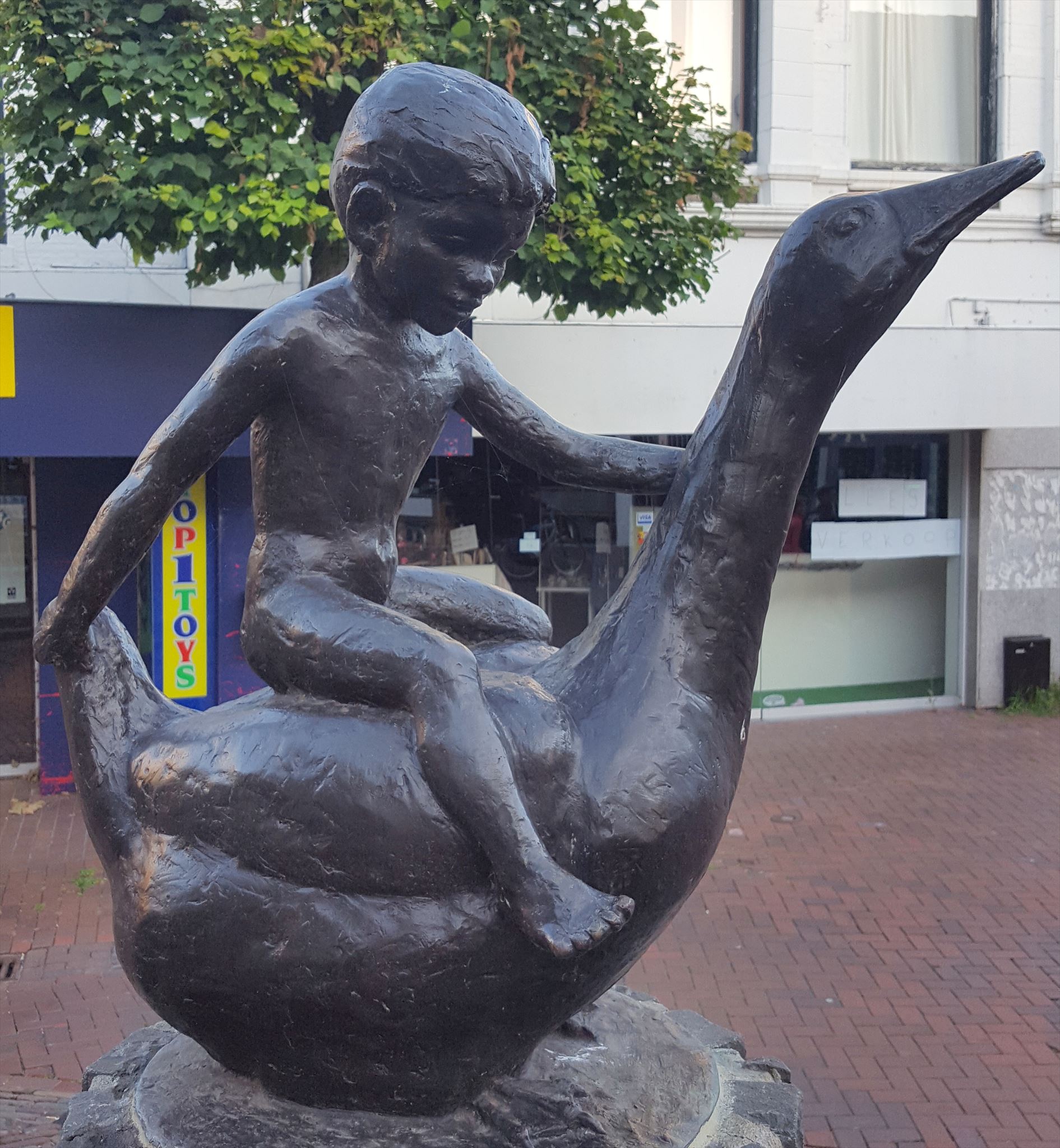 Aangeboden door Stichting City-Promenade aan de Gemeente Almelo. Een beeld van Jits Bakker, een veelzijdige kunstenaar. Oorspronkelijk begonnen als schilder groeide hij via glasmozaïeken naar zijn grote liefde: beeldhouwen in brons en marmer. Zijn bronzen beelden blaken van levenslust, beweging en uitbundigheid. Bron: uitinalmelo.