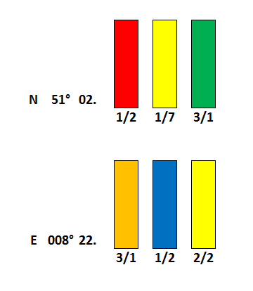 Ihr sucht übrigens nur die jeweils letzten 3 Stellen der Koordinaten, also: