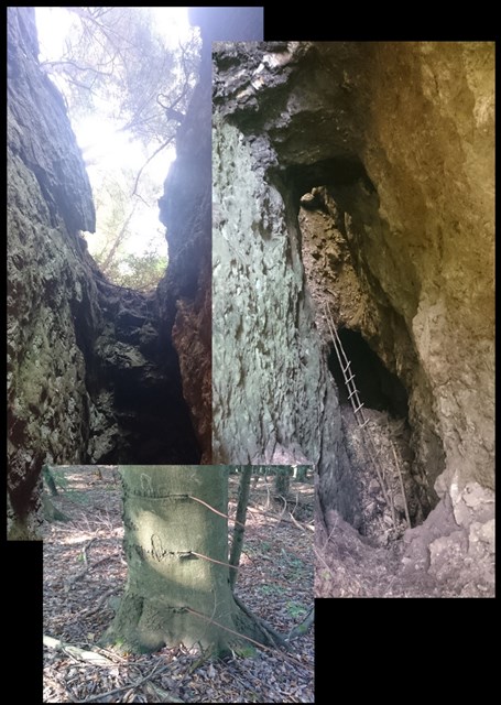 Tuto puklinu som objavil cestou od Banikovho hrobu na Ostru skalu. Niesom ziadny geolog a nenasiel som o nej ziadne info, no fascinovalo ma, aky sposobom pretina cely vrchol kopca. Ako som sa dozvedel od teriho, puklina je vlastne vytazena zila zeleznej rudy. Na povrchu vidno iba cast tazby, zvysok sa nachadza pod zemou a tak je tato oblast zavalovym pasmom. Davajte si preto velky pozor, ked budete hladat kesku.