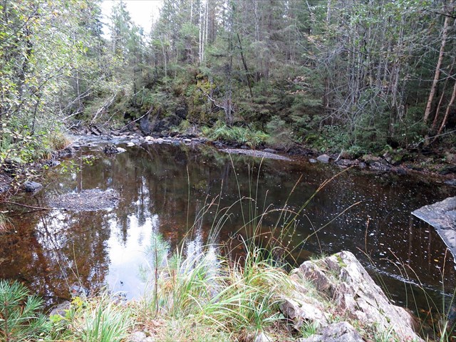 Geocachen er et 50 mL plastrør som inneholder loggbok og en liten blyant - likevel lurt å ta med en egen penn. Takknemlig for at den henges tilbake slik den ble funnet! NB: Litt bratt ned til selve kulpen - og cachen.