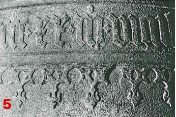 E) Postremo in cavernam, quae inter nucleum latericium luteumque et mantellum luteum facta est, aes liquidum funditur, ut campana vera formetur.