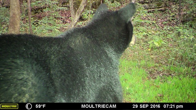 Black Bears typically reach 4 to 6 feet in length. The adult females normally weigh up to 170 pounds while the male can weight up to 350 pounds. The record for Kentucky is 480 pounds. Black bears normally live up to 25 years in the wild. Of the 8 bear species Black Bears are the best climbers. This ability is valuable to them in order to access food and avoid predators. They are also fast reaching speeds up to 35 miles per hour, so don’t even think about trying to out run one of them. Their strength, endurance, and quickness allows them to cover a wide range of land in search for food, habitat, and mates. Males bears have been tracked to travel over 10 miles per day covering hundreds of miles along their journey. Females home range is more limited because of offspring. Bears are solitary animals with the exception of breeding season in June and July and when the mothers have cubs.