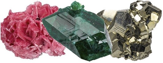 Minerals, naturally occurring elements and chemical compounds having characteristic physical properties such, crystal shape, color, line color, gloss, hardness, cleavage, fracture, density and optical conditions.