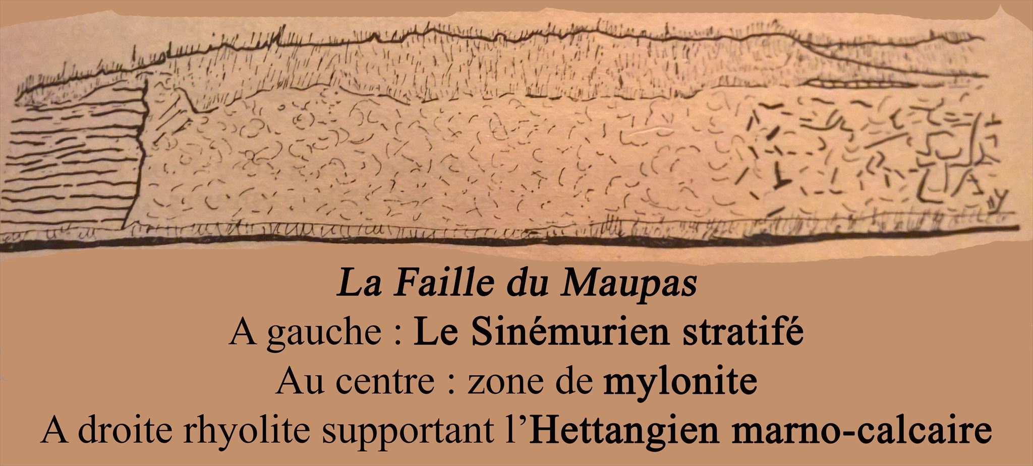 Bien qu il ne sagisse n'est pas la faille principale qui met en évidence la surrection du Morvan, mais une des nombreuses failles transverses qui décale les terrains, cette faille permet d'observer les échanges entre les rhyolites de couleur rouge qui est une roche eruptive et les calcaires gris bleuâtres sinémuriens très riches en Gryphées ; en d'autres termes les formations sédimentaires et le socle.