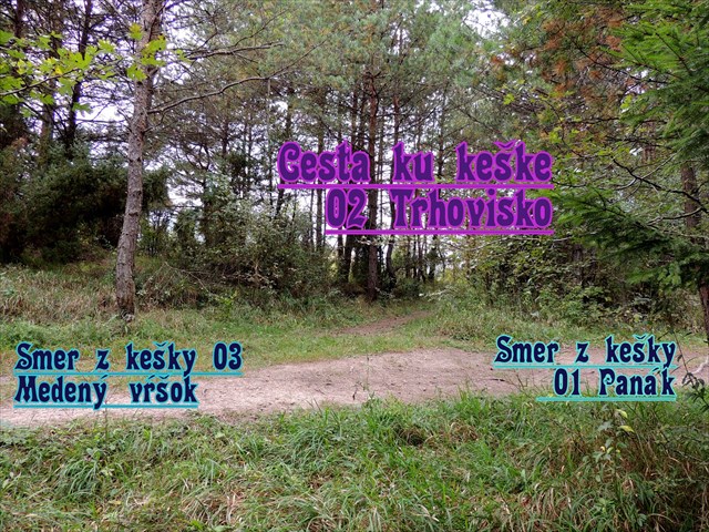K druhej keš zo série sa dostanete lesnou cestičkou, ktorú uvidíte na ľavej strane hneď po príchode na futbalové ihrisko. Začína pri miestnom posedení a privedie vás k rázcestiu, kde zabočte doľava. Po chvíli budete skoro von z lesa a tu na rázcestí odbočte doprava, viď fotohint.
