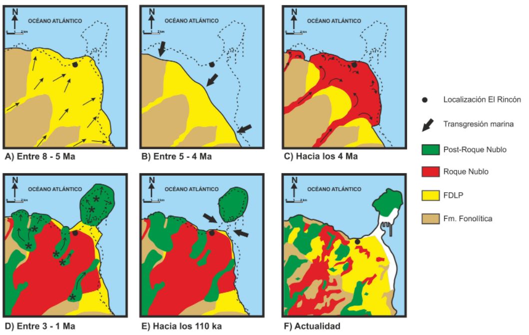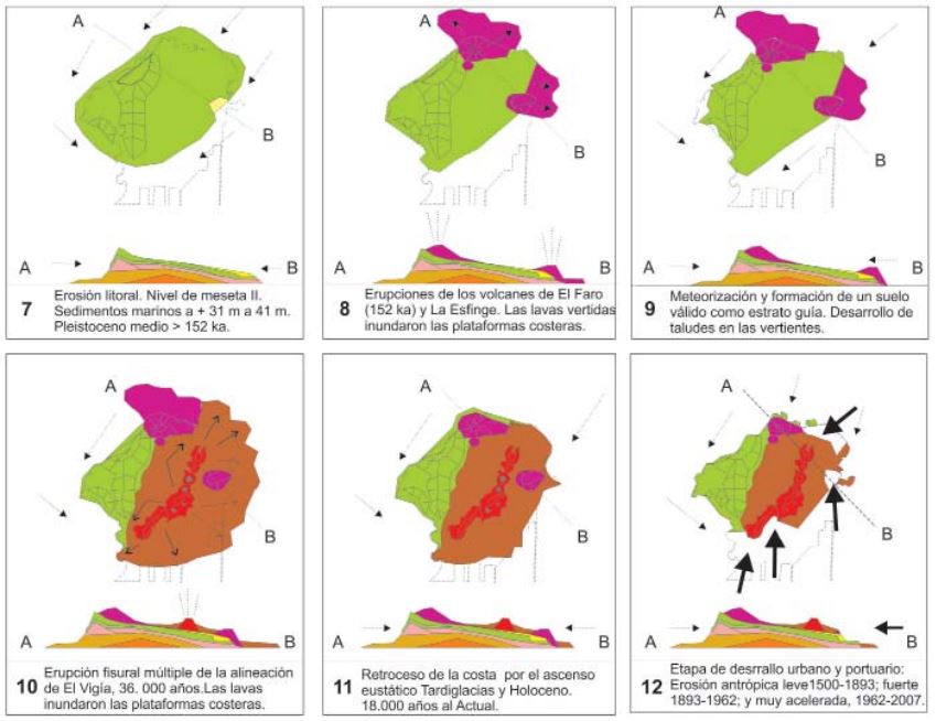 • Los volcanes de El Faro y La Esfinge inician la última fase de crecimiento volcánico, con mecanismos exclusivamente estrombolianos, es decir, de escassa explosividad.