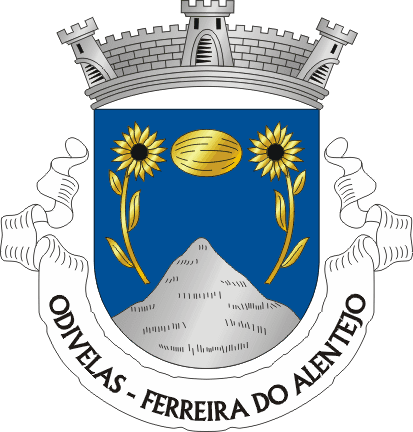 Armas: Escudo de azul, penhasco de prata, realçado de negro, movente da ponta; em chefe, um melão de ouro entre duas flores de girassol. Coroa mural de prata de três torres. Listel branco, com a legenda a negro, em maiúsculas: “ ODIVELAS – FERREIRA DO ALENTEJO “.