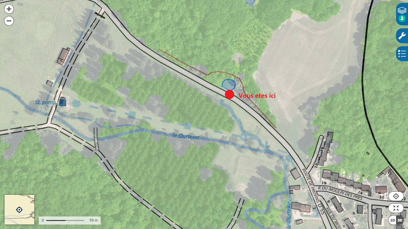 Vous vous trouvez devant un des réservoirs du Durteint le trop-plein d'eau s'écoule par le canal de l'autre côté de la route.
