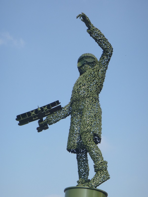 The co-ords should take you to the above sculpture, Andy Scott's Captain Crayford. It is constructed of welded galvanised mild steel and was installed on 30th June 2015. It features a young boy from the interwar period who is about to release a model of a Vickers Vimy aircraft into the air.