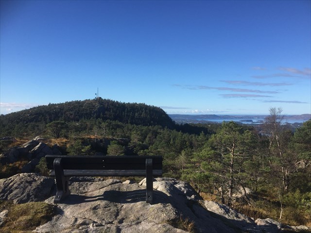 Her er det eit fint utsiktspunkt som høver veldig bra for ein rast. Mot sør ser du Lysefjorden, mot nord ser du mot Bergen. Fanabygdens Venner, som i dei siste åra har lagt ned mykje dugnadsarbeid i å tilretteleggja, rydda og skilta stiane på denne delen av Fanafjellet, har nyleg (hausten 2016) sett opp ein flott benk ikkje langt unna nullpunktet. Du bør kanskje ikkje finna cachen dersom det sit mugglarar på benken...
