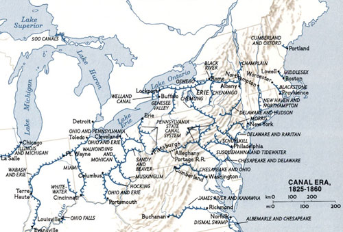 By 1870 over 4,000 miles of canals had been built in the eastern and Midwestern states. These formed a transportation network that played a major role in the westward expansion and the industrial and economic development that made the United States a great nation.