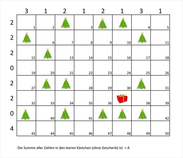 Die Summe aller Zahlen in den leeren Kästchen ist         = A
