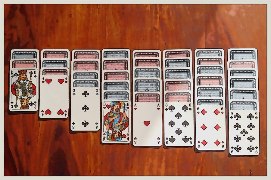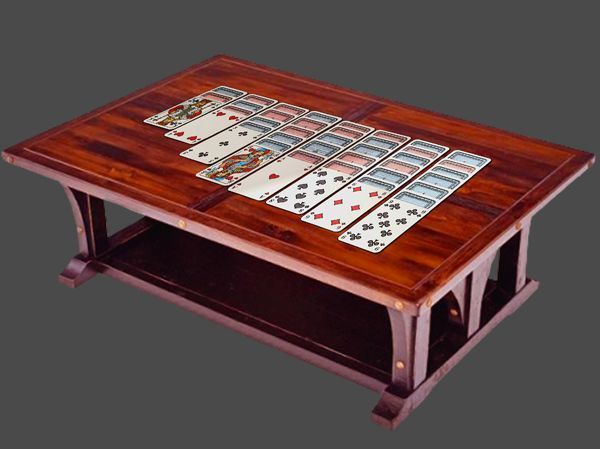 "Hübsch ist es ja nicht!", entfuhr es mir. "Die Spielkarten und der Schriftzug - More than just Cards - ließen mich sofort stutzig werden.", setzte Dana unbeirrt fort. "Ich hatte gehofft, einen Ansatz zu entdecken und habe zur besseren Übersicht die Karten einmal gelegt." Sie zeigte auf einen antiken Tisch, auf dem sich offensichtlich ein exaktes Ebenbild des Gemäldes befand.