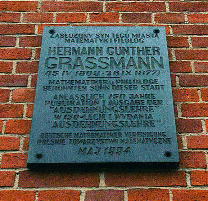 Hermann Grassmann, der Held dieses Caches, war vor allem ein herausragender Gelehrter. Er war der Autor mehrerer Gesetze im Bereich der Elektromagnetismus, Optik und Sprachwissenschaft und entwickelte die Grundlagen der Differentialrechnung. Außerdem verfasste er die deutsche Übersetzung der „Rigveda“, dem ältesten indoarischen literarischen Werk. Er stammte aus Stettin. Zu seiner Zeit war er eher als Sprachwissenschaftler bekannt, heute wird er als Mathematiker geschätzt – eine Gedenktafel zu seinen Ehren findet man an der Fassade des Mathematik-Physik-Gebäudes der Universität Szczecin in der Wielkopolska-Straße 15: „Verdienter Sohn dieser Stadt. Mathematiker und Philologe Hermann Günther Grassmann.
