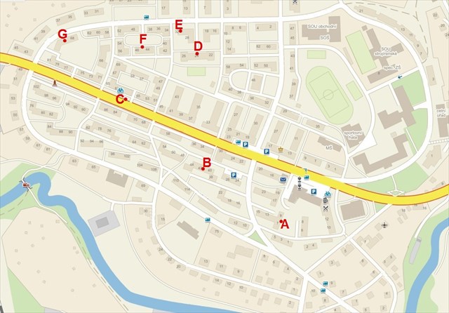 Naše procházka městskou částí Stalingrad začíná v těsné blízkosti Kina Vysočina – již třetí dům na kinem- ve vnitřním bloku- má na sobě první indicii – A. Poté obejdeme dům a přejdeme přes silnici. Hned druhá odbočka (vlevo) nás přivádí k domu, na kterém se nachází další indicie B. Dále vystoupáme menší kopeček a dostáváme se na hlavní silnici – Brodskou, kterou přejdeme na druhou stranu a pokračujeme dále až k domu s indícií C. Následně se můžeme o dům vrátit zpět, nebo projít dvorem. Poté pokračujeme do mírného kopce k domu s věžičkou. Ve vnitřním dvoře domu nalezneme další indícii – D. Již o jeden dům výše, ze strany od silnice, se nachází indicie E. U silnice (stojím zády k indícii) pokračujeme po chodníku vlevo a zamíříme dovnitř dalšího dvora. Uprostřed dvora se nachází dům s indícií F. Následně se vracíme zpět na silnici a pokračujeme dále vlevo. Na předposledním domě v ulici (před křižovatkou) se nachází poslední indicie G. Nyní už stačí doplnit souřadnice do vzorečku a dojít si pro finálku .