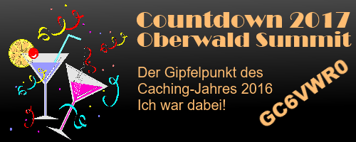 Wie vor einem Jahr (und dem Jahr zuvor und im Jahr davor...) wollen wir, quasi als Gipfelpunkt des (Geocaching-)Jahres 2016, wieder einmal gemeinsam mit Euch bei einem Gipfeltreffen das alte Jahr verabschieden und das neue (Geocaching-)Jahr 2017 begrüßen.
