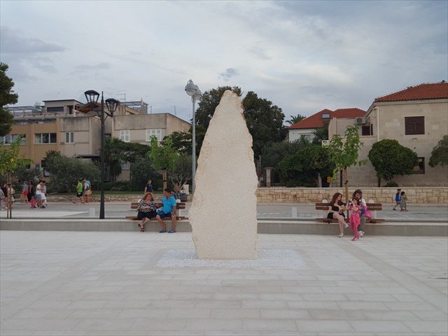 At the listed coordinates you will find interesting monolith that is created from limestone from island of Brac. You can observe it and notice what weathering can do to rocks.
