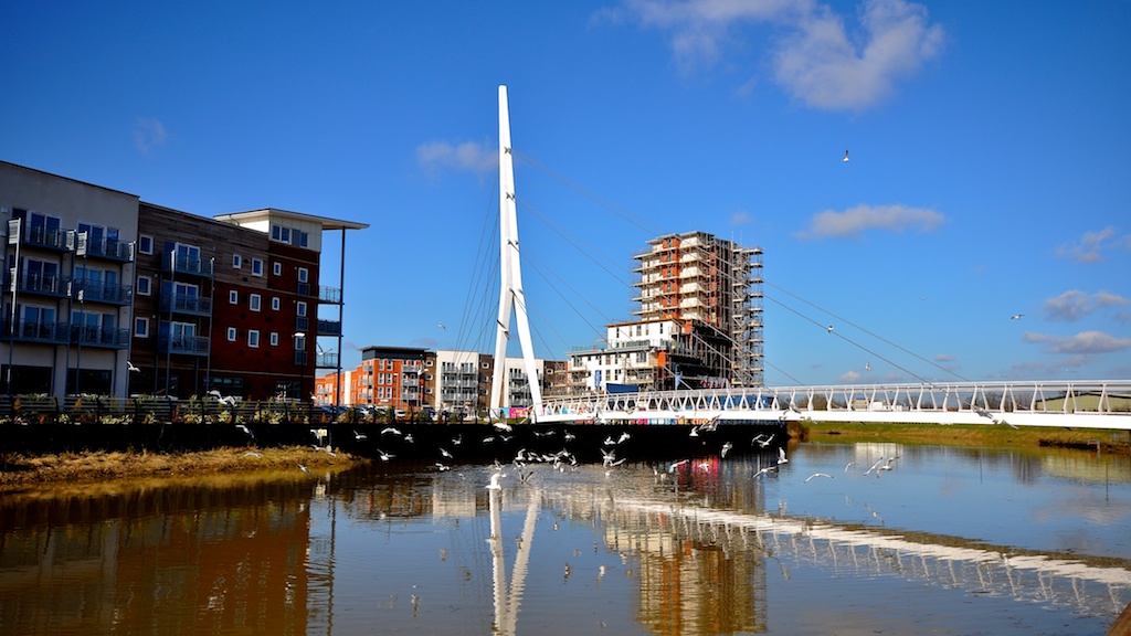 The Sir Bobby Robson Bridge is a 60-metre (200 ft) cable-stayed pedestrian footbridge over the River Gipping , built at a cost of £800,000. The height of the structure makes it the 2nd highest structure in Ipswich. The bridge was named after Sir Bobby Robson, the ex–Ipswich Town manager, Newcastle United manager and England national football team manager, who died in 2009. The bridge was constructed in 2009 - it connects a residential development with the town centre. Before the construction of the bridge, residents had to walk a considerably long way to the next river crossing.