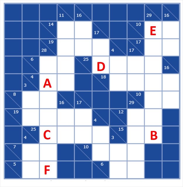 Kakuro is a Japanese logic puzzle, with similarities to both soduko and crosswords. Your aim is to place a number between 1 and 9 in each box, so that the numbers in each run add up to the required total, which is indicated at the top of the vertical runs and the left of the horizontal runs. You cannot repeat a number in a run. You can print out a blank puzzle from the gallery.