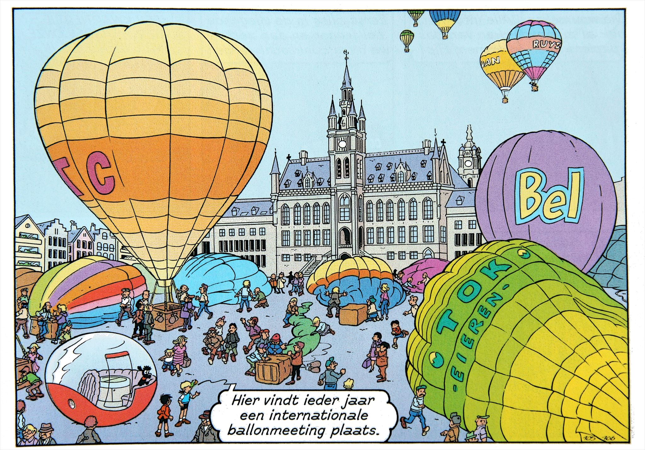 In heel wat strips komen de hoofdfiguren op bezoek bij actuele gebouwen.