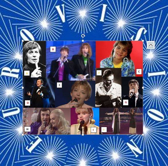 Hier hebben we een aantal Belgische inzendingen, op zich niet moeilijk te herkennen maar hier hebben we de plaats nodig dat deze zanger/zangeres/groep wist te bemachtigen.