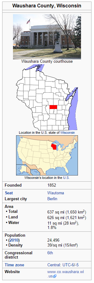 Wisconsin is made up of 72 counties, this cache is focused on Waushara county. Waushara County is a county located in the U.S. state of Wisconsin. As of the 2010 census, the population was 24,496. Its county seat is Wautoma. Waushara County is located in central Wisconsin, about 80 miles (130 km) north of Madison. Here are a few stats about Waushara County, courtesy of Wikipedia. You can learn more about Waushara county at: https://en.wikipedia.org/wiki/Waushara_County,_Wisconsin