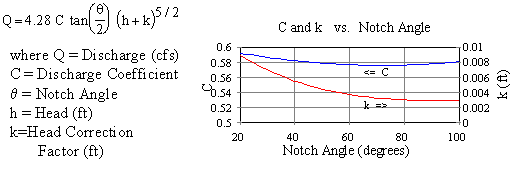 Internet research revealed that it is possible to calculate the rate of water flowing over the weird thing, that has an angle of 60 degrees using the complex engineering Kindsvater-Shen equation.