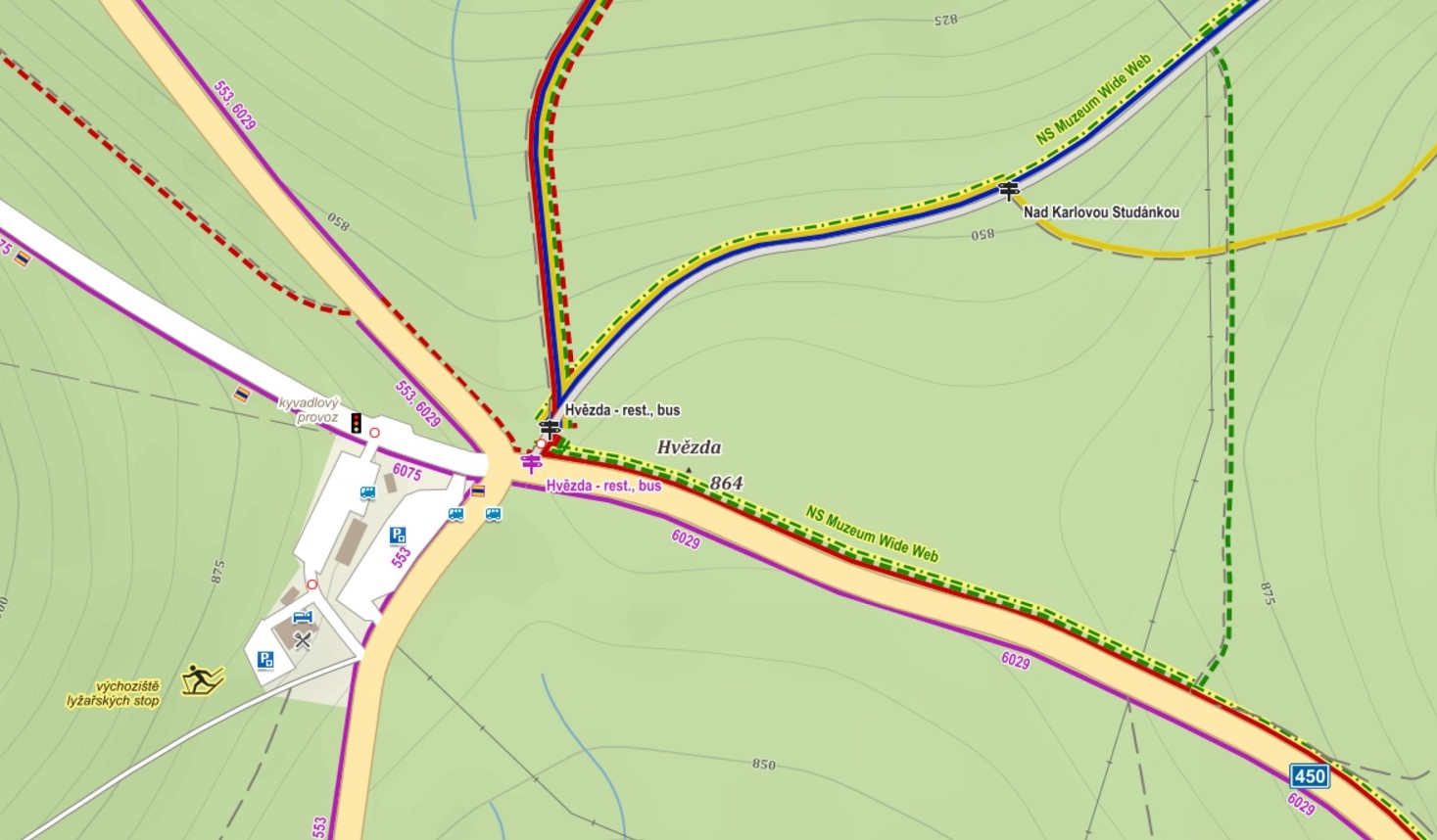 Nejvyšší sedlo na cestě z Malé Morávky do Karlovy Studánky, dnes odstavné parkoviště a výchozí místo pro výstup na Praděd. Název Hvězda nebo také Hvězdová cesta si toto místo vysloužilo již v 18. století díky paprsčitému rozvětvení cest, které tudy prochází. Systém cest tu souvisel právě s lázněmi a jejich lázeňskými chodníky,
