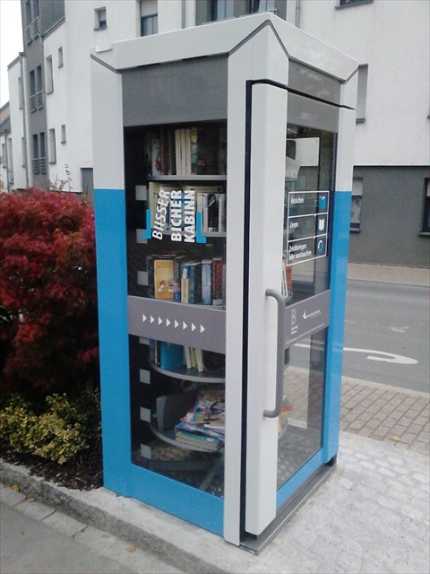 Hei steet d'Biisser Bicherkabinn, eng aal Telefonskabinn matt neier Bestemmung!