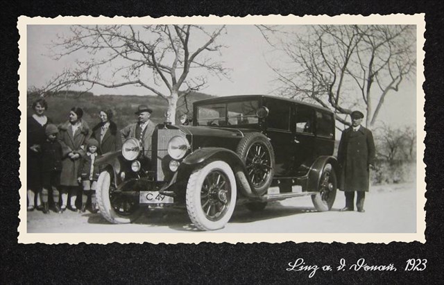 Des Foto muass so um 1923 aufgnumma worn sei. Do hots dann scho de erschtn Autos in Linz geben.