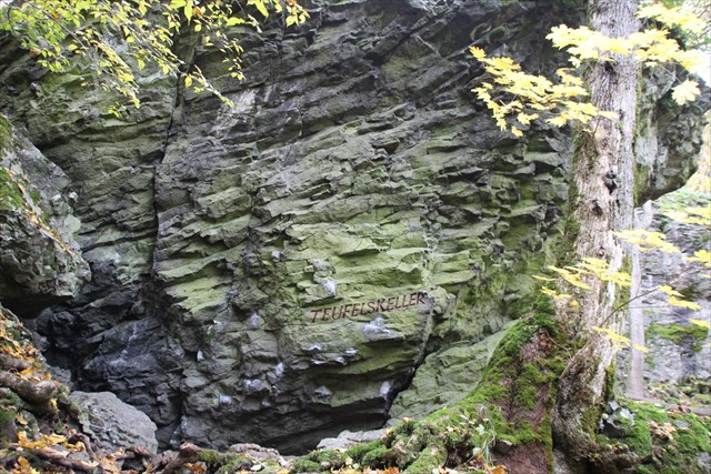 "Diskordanz am Schild 50 m bis zum Teufelskeller"