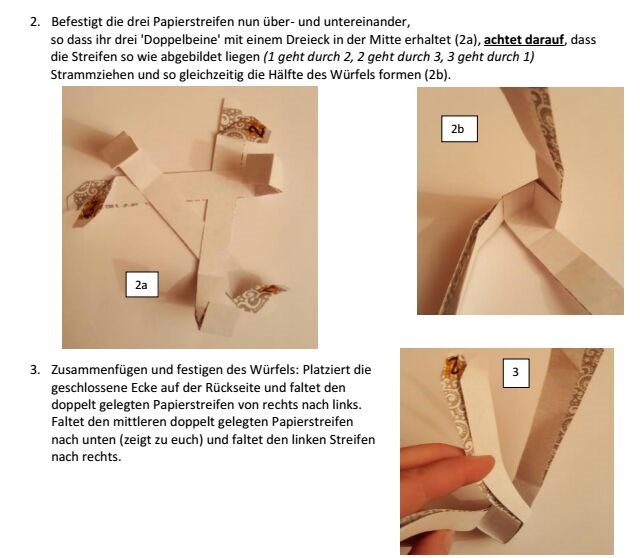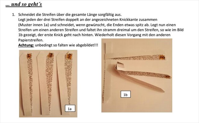 Und ein kleiner Tipp: Das erste Falten bringt das Muster nach innen. Und: GANZ WICHTIG! Alles in DIN A4 ohne Rand Ausdrucken. Zwischenspeichern hilft.