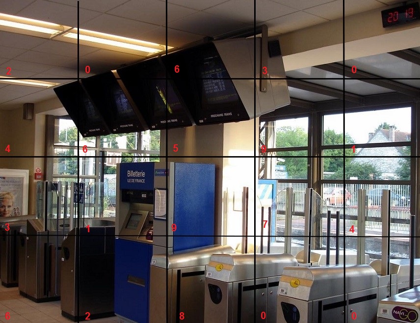En observant avec attention la photo ci-dessus, représentant l'intérieur de la gare de Montigny-Beauchamp, vous devriez retrouver les détails ci-dessous..... Notez le N° de la case correspondante au détail pour calculer les coordonnées finales.